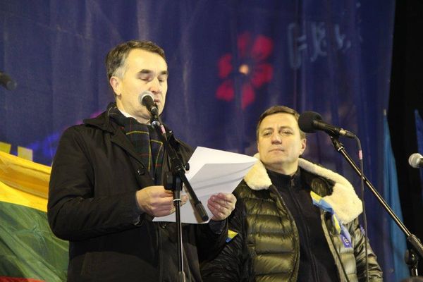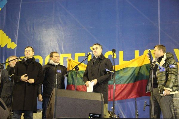 Note: Lithuanian liberals Raimondas Imbrasas (Secretary-General of the Lithuanian Liberal Movement) and Gintaras Steponavičius (first vice -president of LLM) came at Euromaidan yesterday to support the European Party of Ukraine. The Lithuanian Liberal Movement is a member of the ALDE – Alliance of Liberals and Democrats for Europe, as well as the European Party of Ukraine.