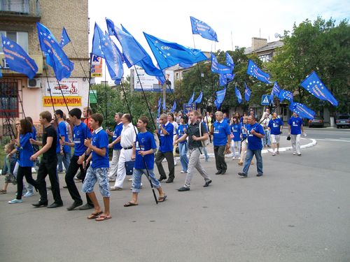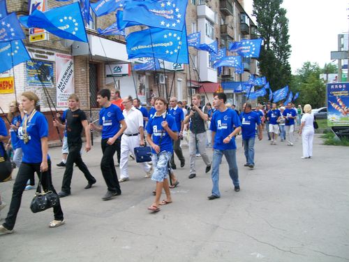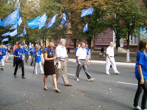 По случаю Дня города партийцы прошли торжественной колонной с другими участниками праздничной городской демонстрации, удобно отличаясь от других своей одеждой, общим духом и даже наличием в своих лавах представителей разных социальных и вековых категорий. Они были одеты в футболки с символикой Европейской партии Украины с надписями «Я люблю Горловку», «Я — горловчанин».