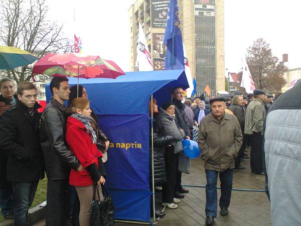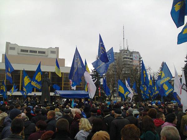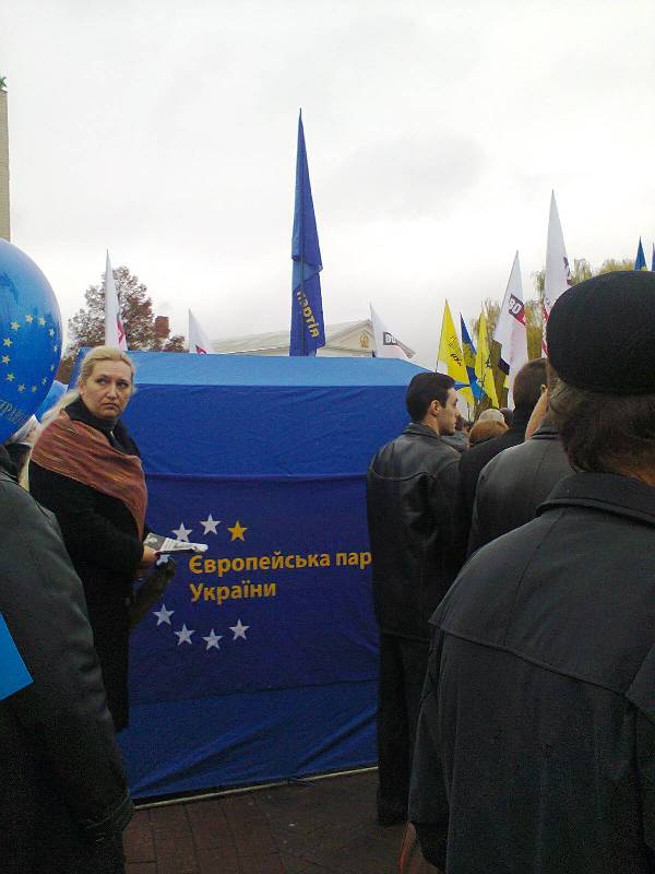 В течение дня инициативная группа на Театральной площади собирала подписи в поддержку подписания Соглашения об ассоциации. Во время митинга люди выстроились в очередь к палатке. По словам активистов, начиная с 22 ноября, удалось собрать около четырех тысяч подписей. Также активисты Европейской партии Украины раздавали листовки о преимуществах Украины после подписания соглашения об ассоциации с ЕС.