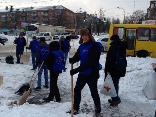 Дорогие киевляне и гости города. Сегодня мы присоединились к ликвидации стихийного бедствия. Группа партийцев Европейской партии Украины помогали расчищать дороги, тротуары и откапывали автомобили возле станции метро Дорогожичи. Снегоуборочной техники, кроме наших лопат, мы не видели. Завтра будет работать 5 волонтерских групп в разных точках города. Приглашаем всех неравнодушных присоединиться к благородному делу или сообщить о необходимости помощи по телефону (044) 235-11-32.