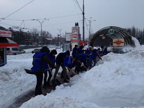 Дорогие киевляне и гости города. Сегодня мы присоединились к ликвидации стихийного бедствия. Группа партийцев Европейской партии Украины помогали расчищать дороги, тротуары и откапывали автомобили возле станции метро Дорогожичи. Снегоуборочной техники, кроме наших лопат, мы не видели. Завтра будет работать 5 волонтерских групп в разных точках города. Приглашаем всех неравнодушных присоединиться к благородному делу или сообщить о необходимости помощи по телефону (044) 235-11-32.