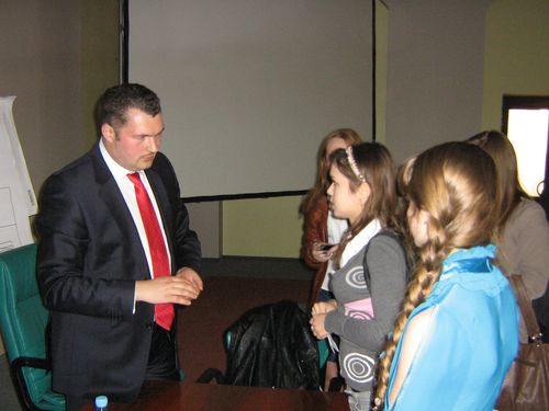 На зустріч з молоддю (студентами провідних ВНЗів Донецька) на запрошення голови Донецької Торговельно-промислової палати Геннадія Чижикова також прийшли народний артист України, художній керівник Донецького академічного національного театру опери і балету Вадим Пісарєв, видавець, засновник журналу «Інвест-газета» Станіслав Шум та директор з розвитку бізнесу в «Pricewaterhouse Coopers» Енді Кузіч.
