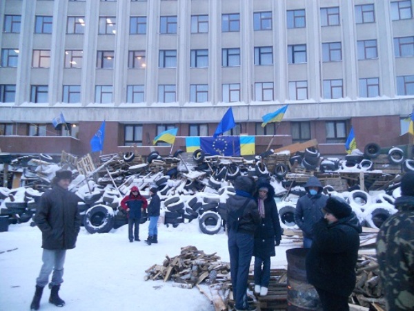 На площади перед Ивано-Франковской облгосадминистрацией с каждым часом растут баррикады (фоторепортаж).