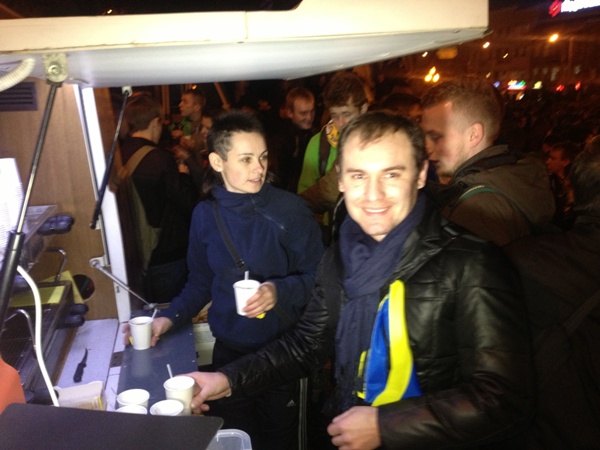 в осенний холодный вечер угостить митингующих «еврочаем». И призывал