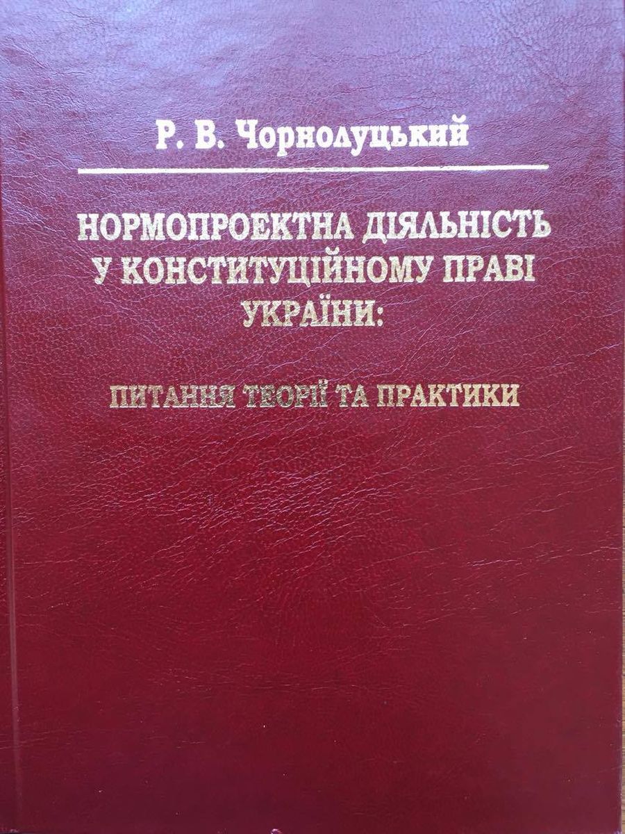 «Эта книга — научный труд моей докторской работы по результатам 6 лет научной деятельности, как докторанта. В 2010 году была утверждена моя докторская тема и был начат процесс работы. Сейчас тема научной работы в Украине не изучена. Нормопроектная деятельность на уровне законодательной и законотворческой работы совсем не изучалась и практически системно нашими парламентариями, к сожалению, не применяется. И это в то время, когда отсутствие теоретической и практической базы нормопроектной деятельности всех государственных органов — дает в результате крайне неудовлетворительное качество законов и других нормативных актов в государстве», — отмечает автор монографии Руслан Чернолуцкий.