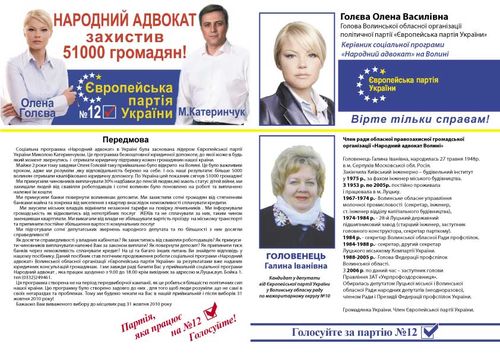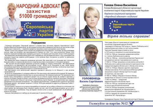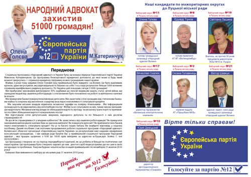 На центральних площах районних центрів Волині та у різних мікрорайонах міста Луцьк активісти Європейської партії України безкоштовно розповсюджують посібники «Народний адвокат».