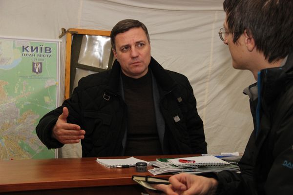 – Мы пытаемся контролировать работу местных чиновников и коммунальщиков. Была такая концепция у власти, сделать так, чтобы в Киеве началось мародерство – беспорядки, разбитые витрины, перебои с электроэнергией, транспортом, снабжением – и все это затем списывалось на Евромайдан, создавая атмосферу недоверия киевлян к тому, что происходит в центре столицы. Мы нанесли упредительные визиты ключевым чиновникам коммунального хозяйства города и предупредили, что если будет саботаж, то потом горожанами обязательно будут сделаны выводы. Кроме того, ресурс Майдана позволяет и более прямое непосредственное воздействие на нерадивого чиновника, например, просто прийти к нему под офис или домой и высказать справедливое недовольство его работой. Попова нам пришлось активно разыскивать, он скрывался, но, в конце концов, в ночь с 10 на 11 нам удалось с ним встретиться и потребовать от него написать заявление об отставке. Дальше, правда, после всем известных событий встречаться с ним было уже бесполезно – он уже знал готовящейся своей отставке и ничего не решал.