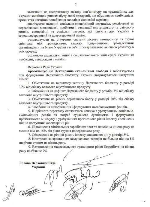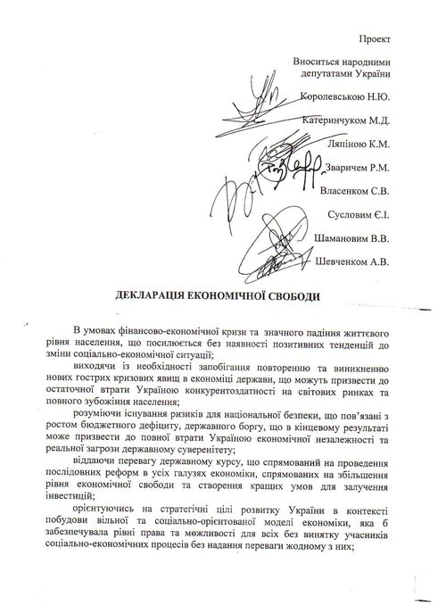 Лідер Європейської партії України, народний депутат України Микола Катеринчук підписав Декларацію економічної свободи, проект якої був анонсований Головою Комітету Верховної Ради України з питань промислової і регуляторної політики та підприємництва Наталією Королевською.