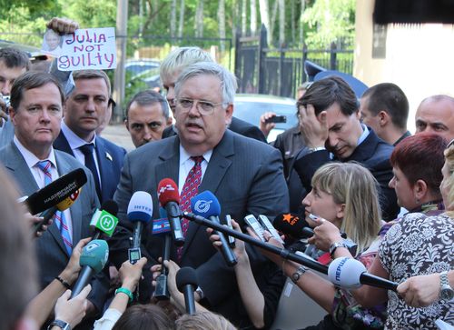 У представників дипломатичного корпусу США в Україні, які прибули до ЦКЛ «Укрзалізниці» у Харкові для зустрічі з екс-прем’єр-міністром України Юлією Тимошенко, забрали фотоапарати.