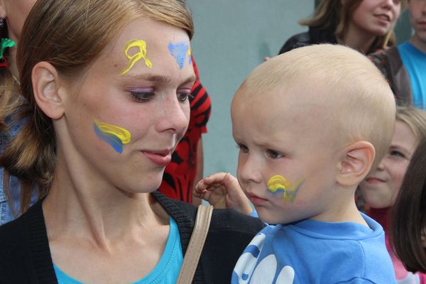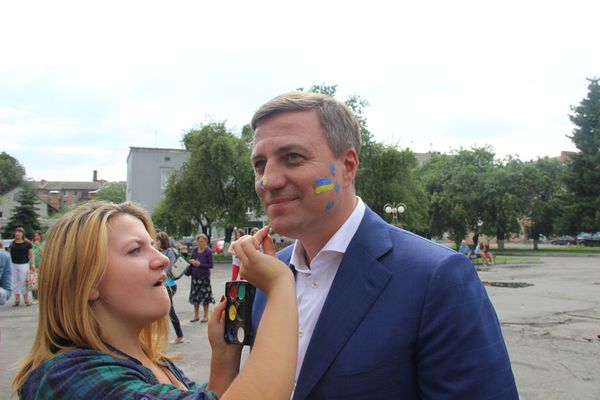 Після урочистої частини молодь влаштовує на площі патріотичний боді-арт. Учасники конкурсу на швидкість розмальовують обличчя усім бажаючим. В поле їх творчості попадає і Микола Катеринчук, який залюбки підставляє щоки і ніс юним художникам. Зрештою, нагороджує учасників конкурсу.