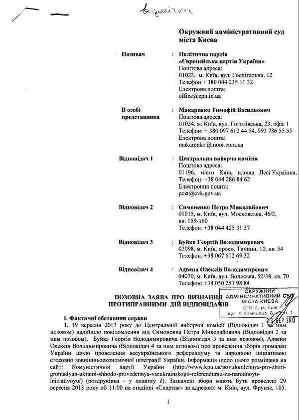 Нагадаємо, 23 вересня Європейська партія подала судовий позов із проханням заборонити комуністам організовувати і проводити збори громадян щодо всеукраїнського референдуму, визнавши такі їхні дії протиправними.