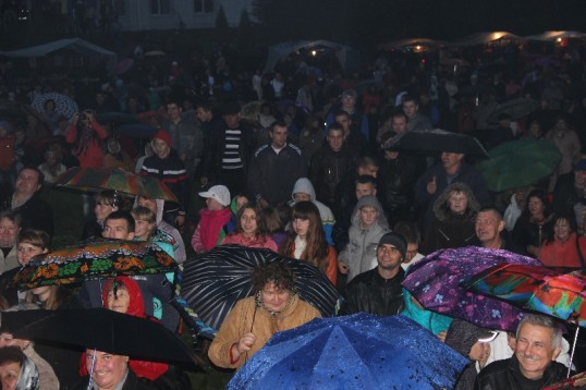 Хмельничани не тільки слухали, але й були активним учасниками святкового концерту. Молодь співала на сцені караоке і отримували свої призи. Поряд викарбовували ювілейні монети на згадку місцевим жителям лицарі вінницьког о «Ордена Сонця» на чолі з його магістром Олександром Шеметом. А коли на сцену вийшов Павло Зібров зі своїм запальним жіночим колективом, площу заполонили глядачі з різнокольоровими парасольками.