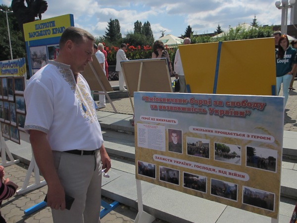 Чималу цікавість викликала виставка світлин, присвячена темі Майдану та загиблим військовим. Один із стендів експозиції був присвячений хмільничанам: на світлинах з Майдану – представники Європейської партії України та загиблий хмільничанин Сергій Муравський.