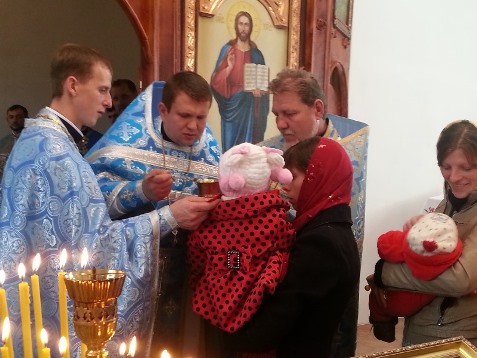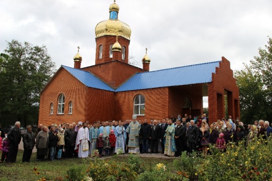 Першими причасниками на першій Літургії у новому храму були три місцеві жительки та близько 15 дітей. Після святого причастя владика привітав усіх з великою подією в історії села – освячення храму. Він нагородив архієрейськими грамотами будівничих, меценатів та активних місцевих жителів, які допомагали будувати храм. Головний ініціатор Юрій Гуцалюк отримав орден Пресвятої Богородиці. А Миколі Катеринчуку владика вручив грамоту.