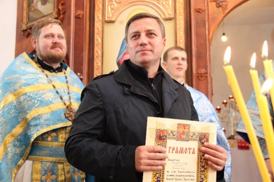До храму приїхав єпископ Вінницький і Брацлавський Михаїл (УПЦ КП) та 10 священиків єпархії. Владика освятив престол храму та приміщення церкви. Потім відслужив першу Божественну літургію. Під час богослужіння владика нагородив настоятеля храму отця Ярослава правом носіння наперсного хреста.