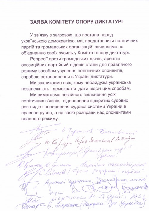 Лідер Європейської партії України, народний депутат України Микола Катеринчук підписав спільну заяву Комітету опору диктатурі